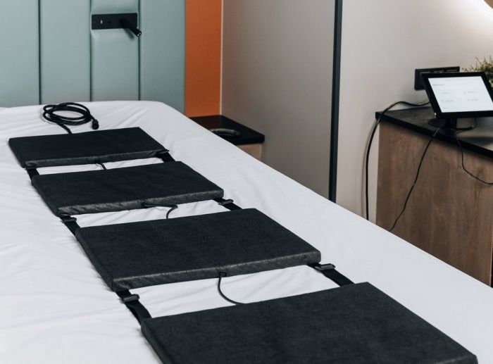 ► Захранващ адаптер, електронен контролен блок и смарт приложение за избор на програми и настройване на вибрациите