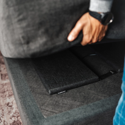 Нюросоник Хармония е компактно устройство, поставяно под матрак, дюшек или мека мебел, което генерира плавни вълни от нискочестотни звукови вибрации с цел редуциране на стреса, улесняване на съня, временно изключване на вниманието от ежедневните тревоги или подобряване на кръвоснабдяването и възстановяването на организма след различни натоварвания. С помощта на Нюросоник Хармония можете да превърнете почти всяко легло, диван, шезлонг или кресло в център за възстановяване на организма и релаксация на нервната ви система. Устройството е сгъваемо, компактно и тежи само 4 килограма, което ви позволява да го пренасяте навсякъде където ви е необходимо. Генерираните звукови вълни са с много ниска честота и почти не се чуват, а се възприемат като плавни вълни от вибро-масажни вибрации. По този начин устройството може да се използва по всяко време на денонощието без да пречи на околните. Вградените в контролното смарт-приложение 9 програми се използват за подобряване на съня, временно дистанциране на вниманието от ежедневните притеснения, релаксация, активация на нервната система или подобряване на метаболизма и възстановяването на организма след физически натоварвания или различни здравни проблеми. Нюросоник Хармония не е медицински уред, а само средство, с което помагате на организма и нервната ви система да се възстановяват по-добре след стрес от различен характер. Кликнете тук, за да разгледате подробното описание. ЗА ДОСТАВКА И ПОРЪЧКА ПО ТЕЛЕФОН : 0885 090 772